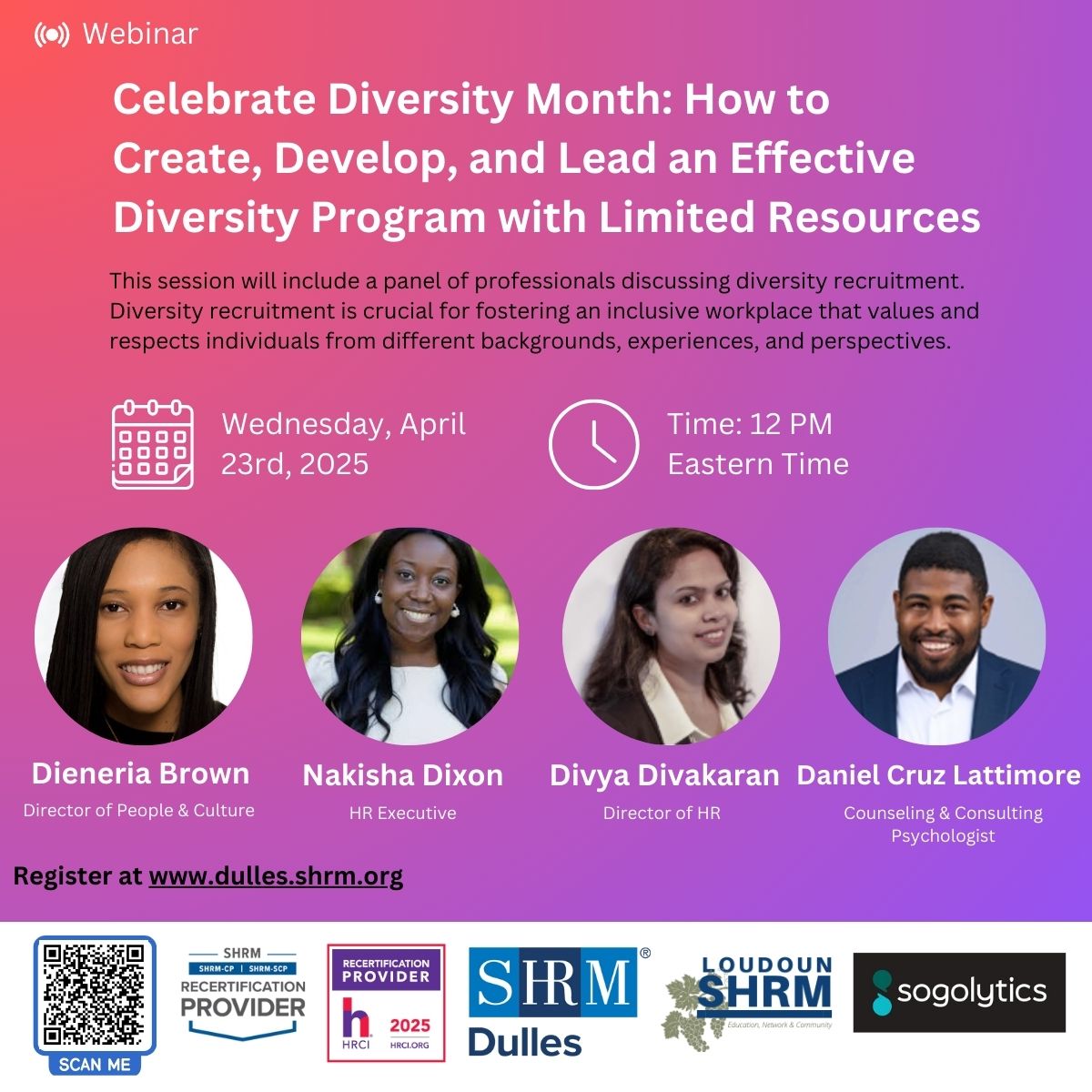 This session will include a panel of professionals discussing diversity recruitment. Diversity recruitment is crucial for fostering an inclusive workplace that values and respects individuals from different backgrounds, experiences, and perspectives. By actively seeking to hire talent from diverse racial, ethnic, gender, and socioeconomic groups, organizations can enhance creativity, innovation, and problem-solving. A diverse workforce brings a wide range of ideas, which can help companies better understand and serve their customers, leading to improved business performance. In this interactive panel session and discussion, we will discuss how organizations can build diversity recruitment programs focused on results.