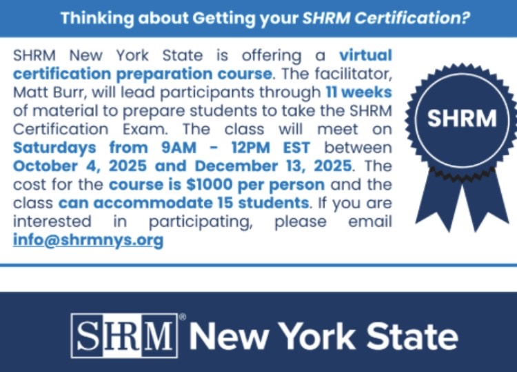 We are pleased to announce that SHRM NYS is now offering a SHRM-CP/SHRM-SCP study group using the 2025 SHRM Learning System. The learning system provides a roadmap to guide your studies through the entire SHRM Body of Applied Skills and Knowledge® (SHRM BASK®).