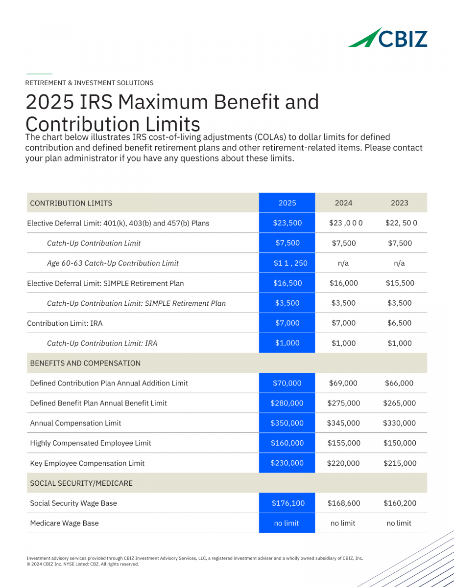 To help our members navigate changes to retirement plan contribution limits for 2025, we are posting this information. Select the link to review the full document