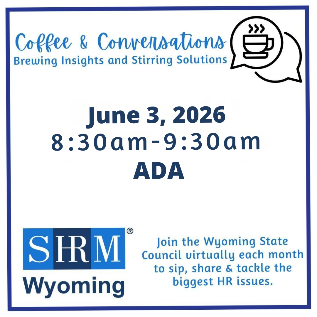 Join the Wyoming State Council virtually each month to sip, share & tackle the biggest HR issues. These meetings are always held the first Wednesday of the month at 8:30am.